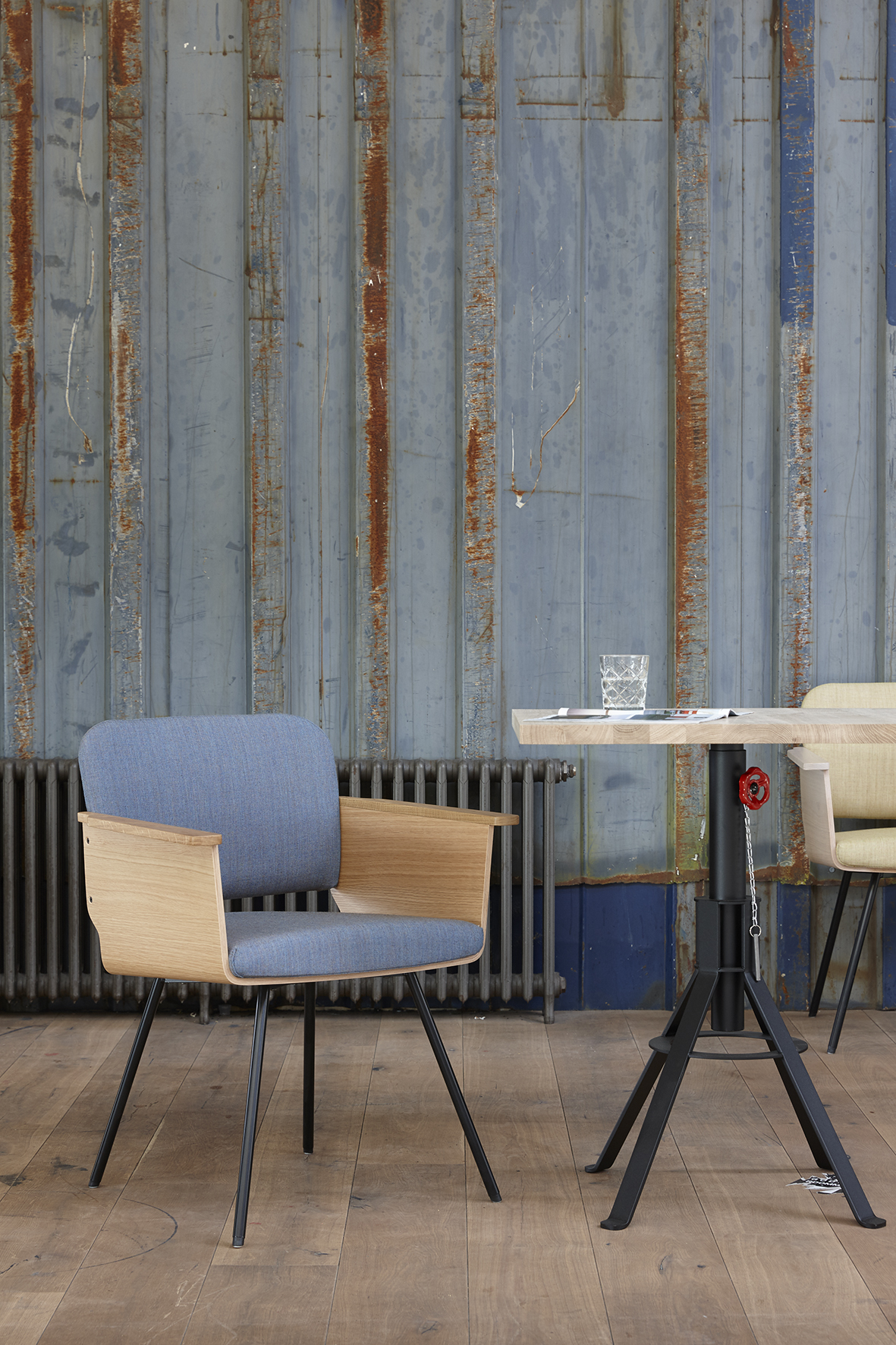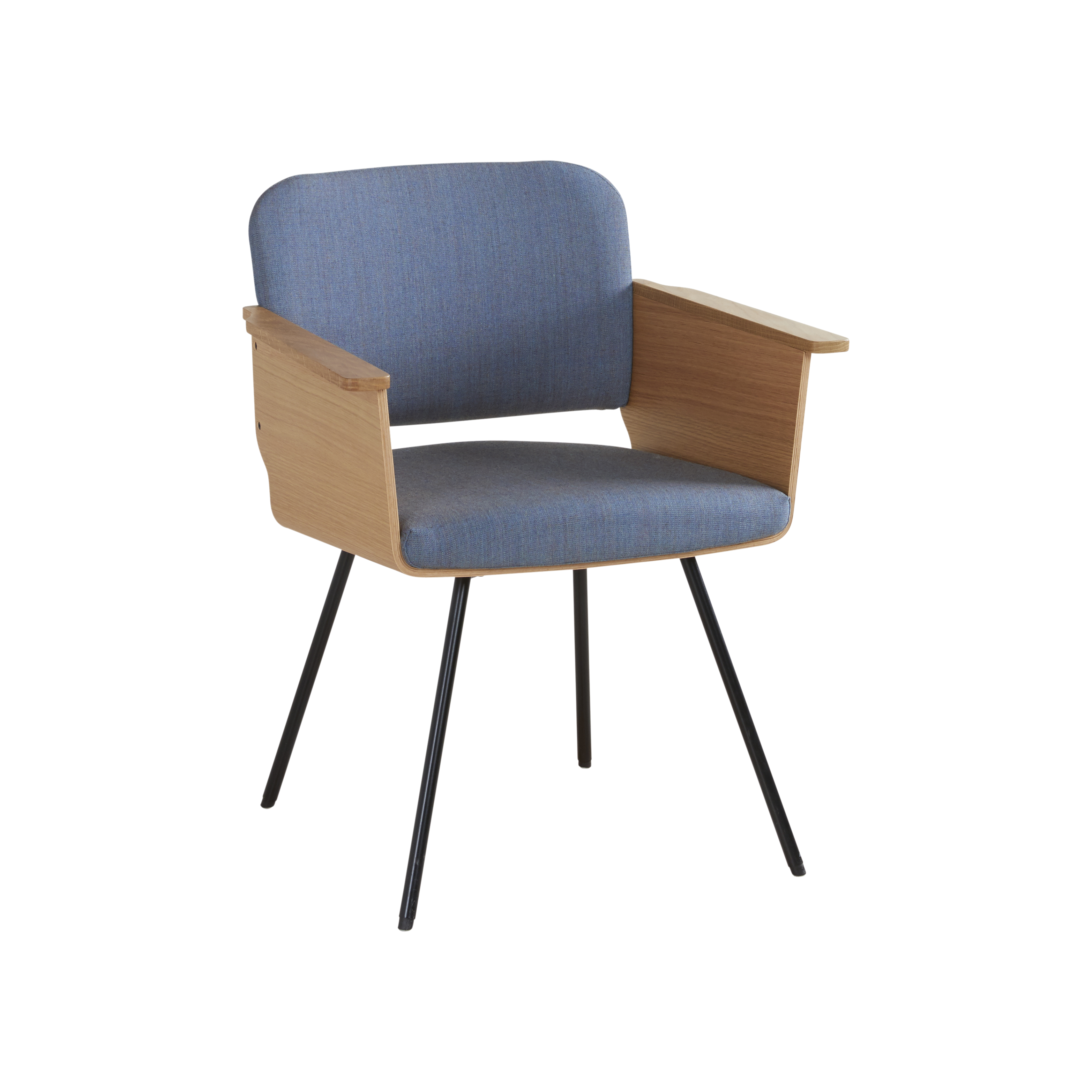 De houten kuip van deze design eetkamerstoel bestaat uit sierlijk gebogen eiken fineer en is beschikbaar in de kleuren: