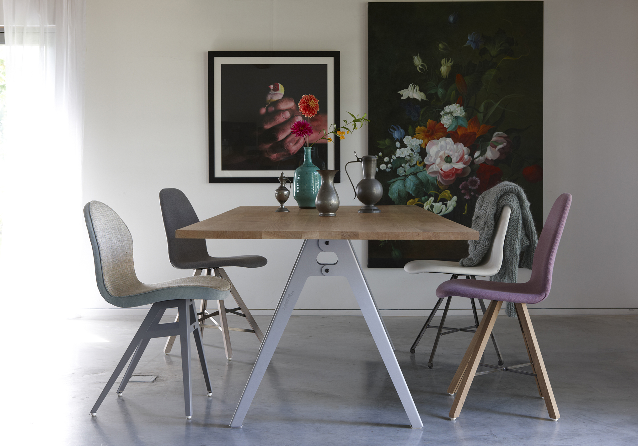 Deze mooie eettafel Jane heeft een mooi blad in massief eiken. Het stalen frame doet een beetje denken aan een passer en is een echt staaltje Nederlands vakmanschap. Het is gebogen staal met de subtiel uitgelaserde naam Spoinq in de poot. Het eikenhout is vlekwerend behandeld met Woodlock waardoor je probleemloos van je tafel kan genieten. Ben jij op zoek naar een tafel met een moderne maar warme uitstraling? Dan is de design tafel Jane zeker iets voor jou.