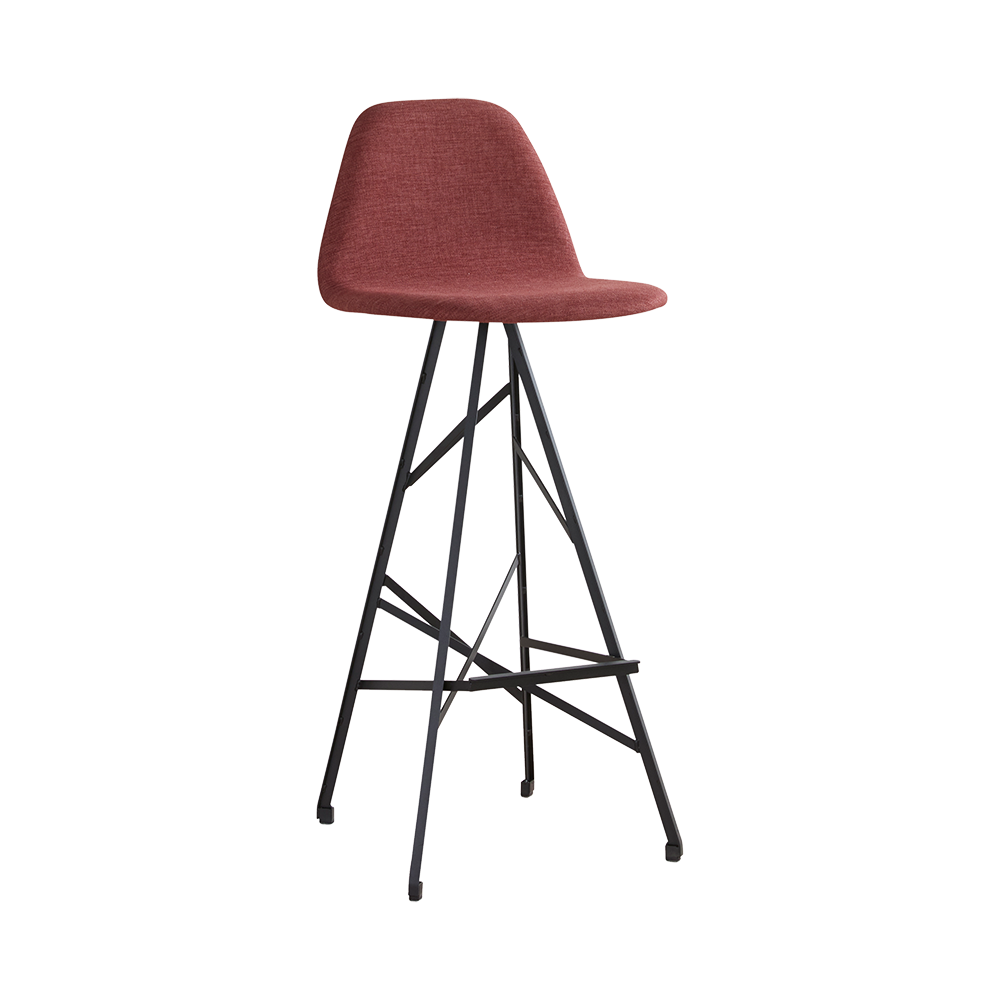 Een leuke barstoel met een zithoogte van 65cm en daardoor perfect aan de bar. Met stalen poot en een comfortabele, gestoffeerde zitting met hoge rug. Je kunt de stof helemaal zelf kiezen en daardoor ontwerp je je eigen persoonlijke barstoel! Bij de zithoogte van 65cm past een bladhoogte van ongeveer 95cm. Is het bar blad veel hoger dan kun je beter kiezen voor onze barstoel van 75cm zithoogte. Deze barstoel is ook verkrijgbaar met houten poten of met een lage rug.