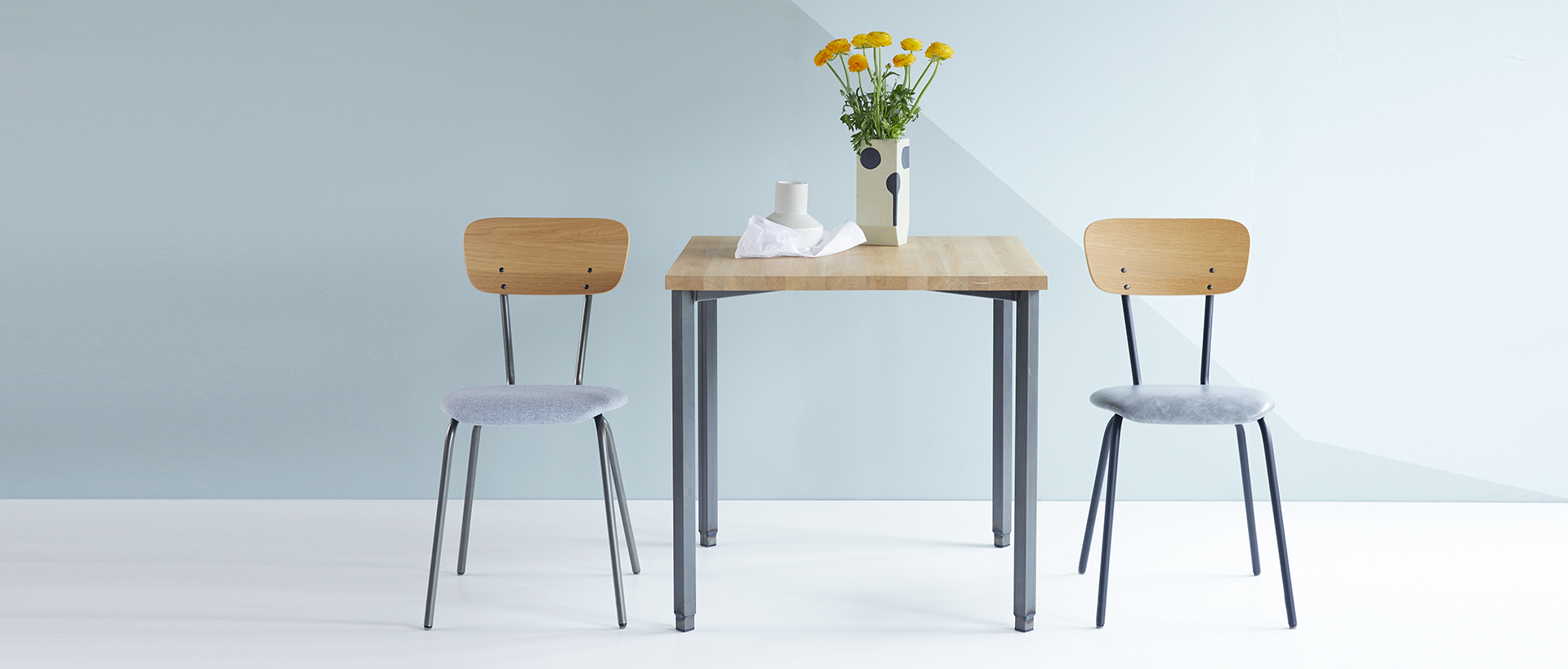 Als je denkt aan een praktische, comfortabele, design stoel, dan denk je aan Spranq! Deze stoel is makkelijk toepasbaar in iedere ruimte. Ook deze design stoel is weer geheel samen te stellen. Hoe leuk! Kies een kleur voor de eiken rugleuning, het gestoffeerde zitgedeelte en de mooie ranke poten. De coating van het onderstel kan ook in meerdere kleuren.